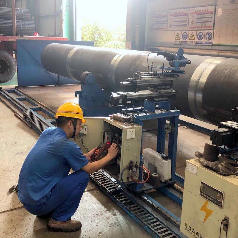 類(lèi)似設(shè)備技術(shù)改造,吳昊參與完成的項(xiàng)目數(shù)不勝數(shù),比如雙絲埋弧焊焊接電器改造、所有埋弧焊機(jī)無(wú)線遙控改造、組隊(duì)滾輪架拼裝焊接改造、水管鍋筒焊接機(jī)器打磨、模式壁自動(dòng)焊的電焊機(jī)改造等項(xiàng)目。就在剛剛他又和機(jī)修師傅們一起完成一項(xiàng)火管車(chē)間管頭打磨機(jī)自動(dòng)化的改造,原來(lái)四五個(gè)人花費(fèi)幾天才能完成的人工打磨,現(xiàn)在只要一人調(diào)運(yùn)上管,按下啟動(dòng)全部自動(dòng)打磨好,省時(shí)省力節(jié)約成本。