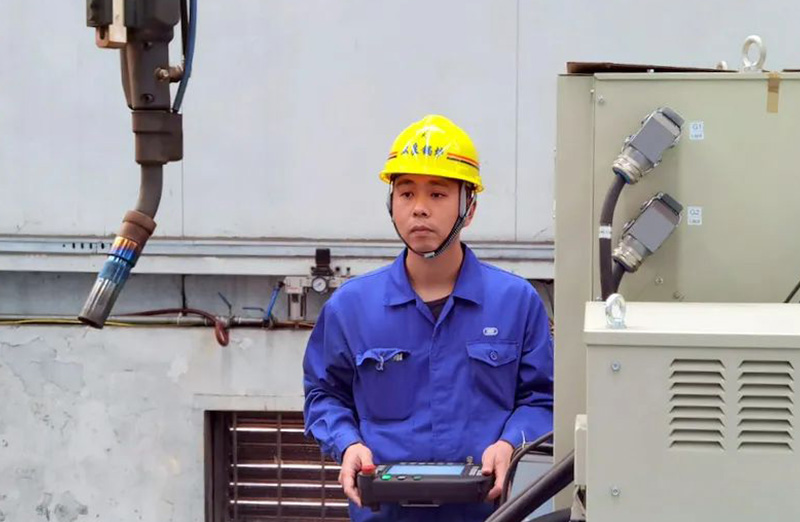 類似設(shè)備技術(shù)改造,吳昊參與完成的項目數(shù)不勝數(shù),比如雙絲埋弧焊焊接電器改造、所有埋弧焊機無線遙控改造、組隊滾輪架拼裝焊接改造、水管鍋筒焊接機器打磨、模式壁自動焊的電焊機改造等項目。就在剛剛他又和機修師傅們一起完成一項火管車間管頭打磨機自動化的改造,原來四五個人花費幾天才能完成的人工打磨,現(xiàn)在只要一人調(diào)運上管,按下啟動全部自動打磨好,省時省力節(jié)約成本。